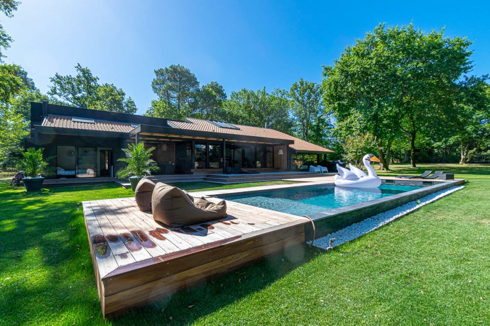 Rénovée en 2019, elle offre un esprit contemporain s'inscrivant parfaitement dans la nature environnante. Une invitation à la détente.